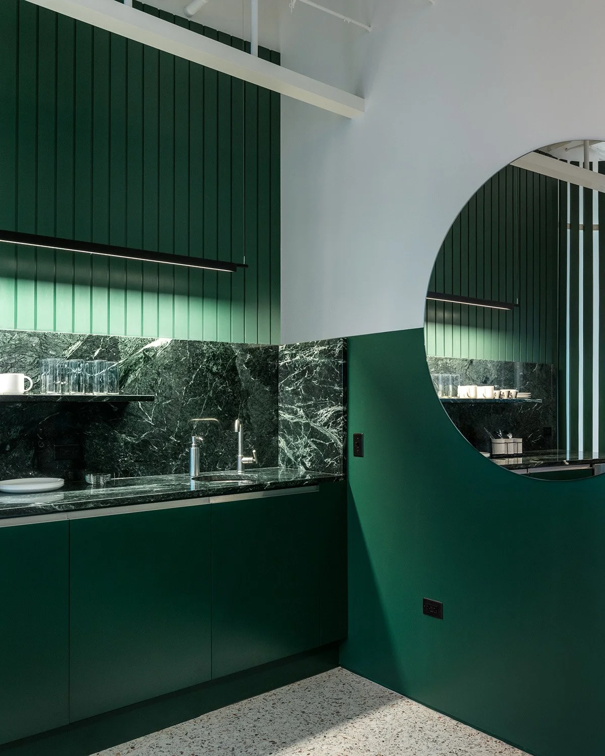 The project brought together high-end finishes and complex systems, including custom millwork, integrated security infrastructure, a Maars living wall, Italian terrazzo tile, and a precision-controlled HVAC system. The result is a workspace designed to perform reliably while reflecting the identity of the Consulate.